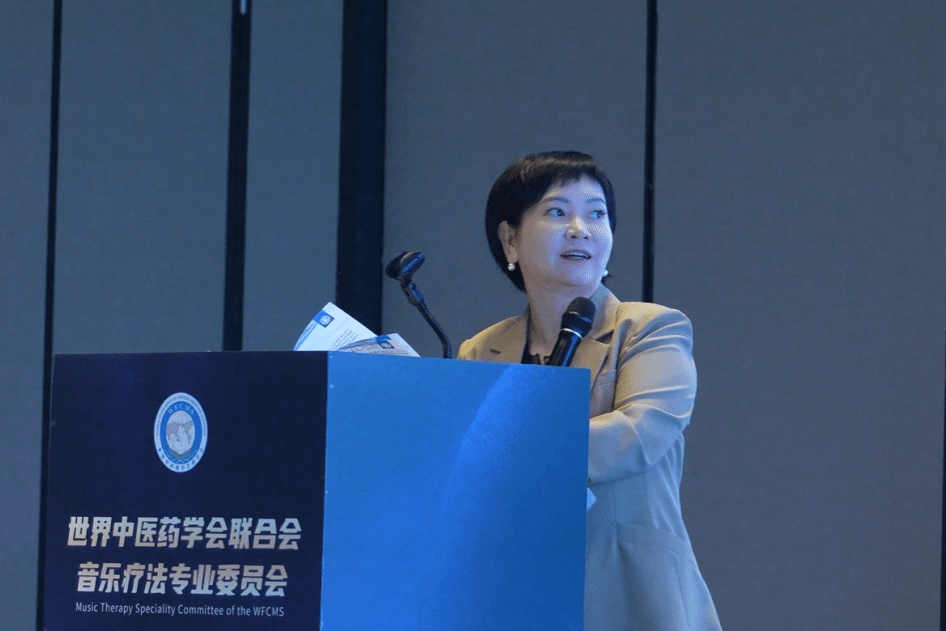 世界中医药学会联合会副主席兼秘书长李昱致辞。他代表世界中联对参会专家、学者及领导表示欢迎与感谢。他提到,音乐疗法专业委员会是世界中联191个分支机构中多学科交叉融合尤为突出的代表。他强调,中医药作为中华文明瑰宝在国际传播与人类卫生健康共同体建设中具有重要作用。音乐疗法专委会在王新华会长带领下,在理论创新、临床实践、国际交流与人才培养方面取得了突出的成绩,期待专委会未来在国际标准建设、多学科融合等方面实现新突破,为推动中医药高质量发展和人类健康福祉作出更大贡献。
