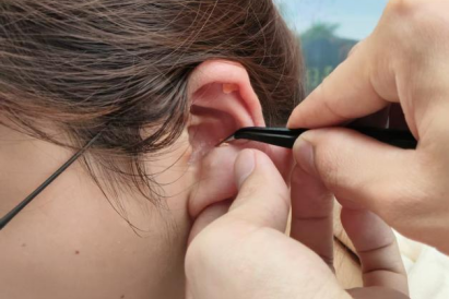 耳豆体验区,志愿者们在老师的指导下,精准找准师生的耳穴位置,将王不留行籽贴敷于耳穴上,并耐心讲解按压方法与对应功效,针对失眠、焦虑、眼疲劳、脾胃不适等常见问题进行对症贴敷,手把手教大家日常通过按压耳豆调理身体,简单便捷的理疗方式深受师生喜爱。