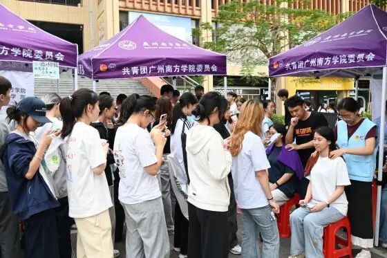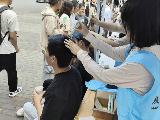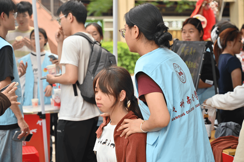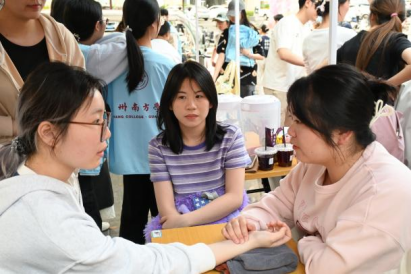 推拿的队伍从活动开始一直排到结束,成为集市上最热闹的角落之一,师生同心的服务身影,也成为现场一道暖心的风景线。